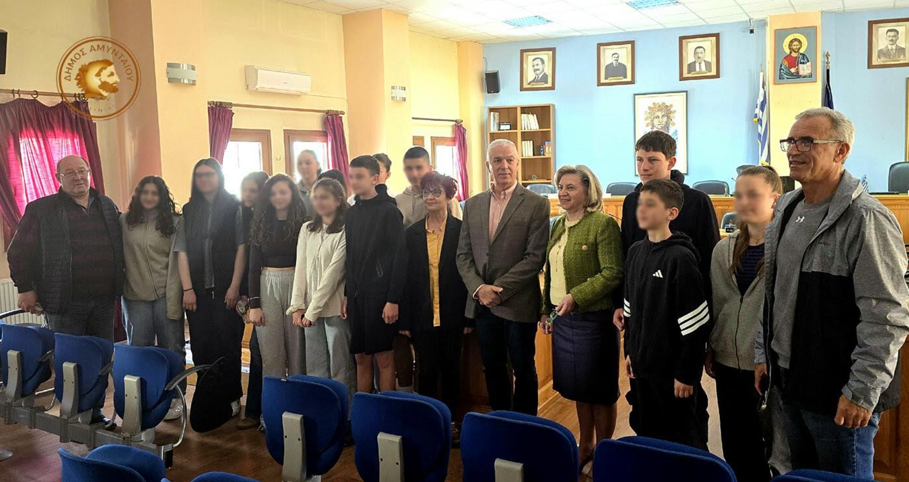 Μια ιδιαίτερα ενδιαφέρουσα και ουσιαστική επίσκεψη πραγματοποίησαν στο Δημαρχείο Αμυνταίου μαθητές και μαθήτριες της Β’ Τάξης του Γυμνασίου Αμυνταίου, συνοδευόμενοι από τις καθηγήτριες κα. Γρομπανοπούλου και κα. Ρούσσου, προκειμένου να παρουσιάσουν την εργασία τους με θέμα την αντισεισμική προστασία.