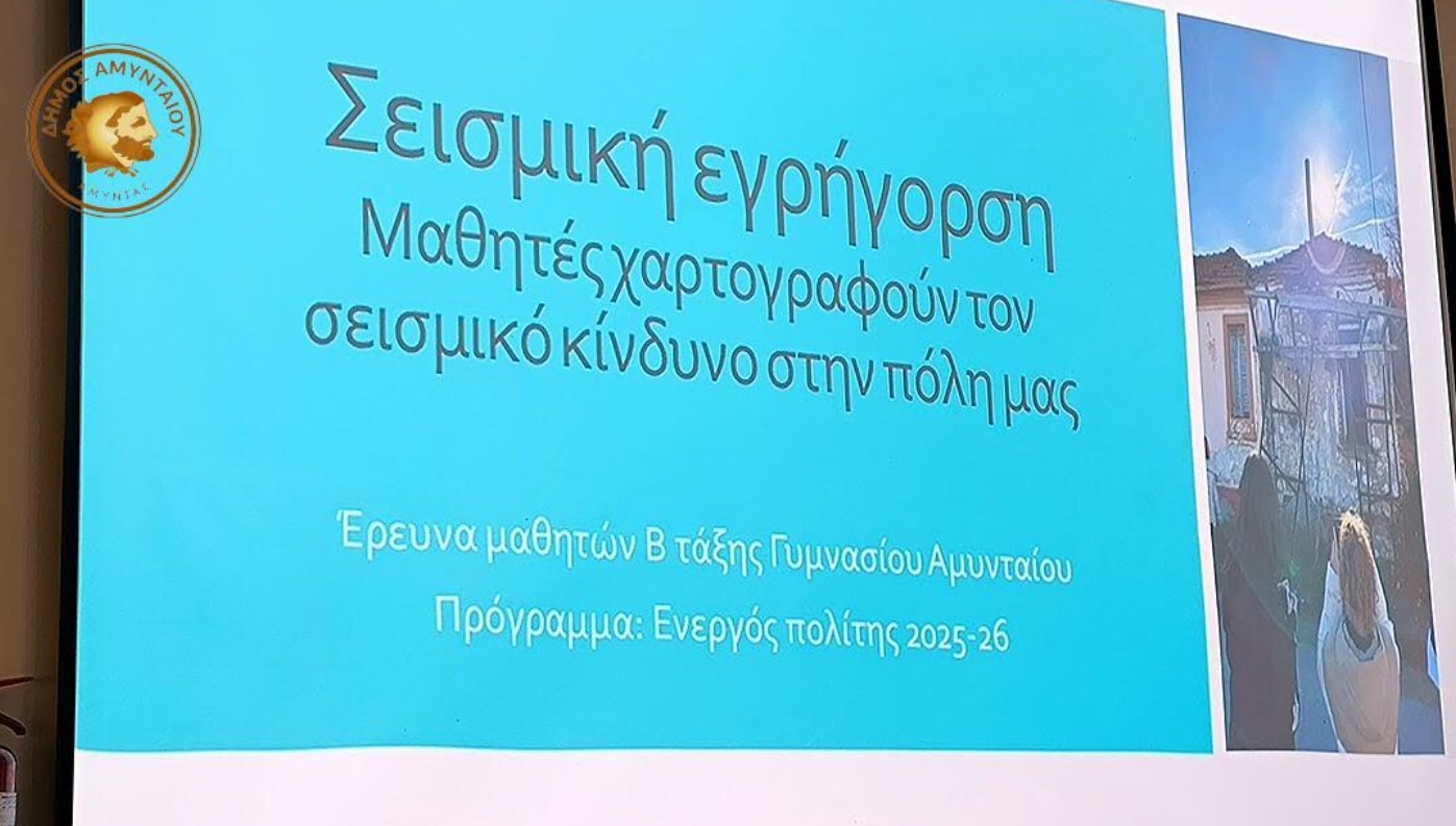 Μαθητές της Β’ Τάξης του Γυμνασίου Αμυνταίου παρουσίασαν στο Δημαρχείο εργασία για την αντισεισμική προστασία