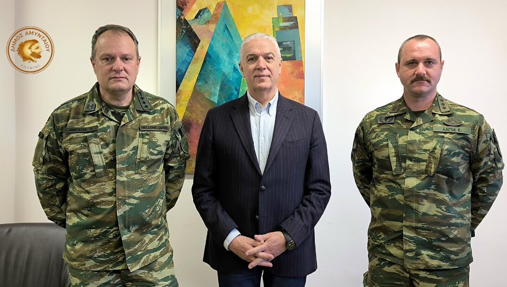 Τον Δήμαρχο Αμυνταίου Ιωάννη Λιάση επισκέφθηκε το πρωί της Παρασκευής 13 Μαρτίου 2026 ο νέος Διοικητής του 1ου Συντάγματος Πεζικού, Συνταγματάρχης Ανέστης Ανέστης, στο πλαίσιο εθιμοτυπικής επίσκεψης και γνωριμίας.